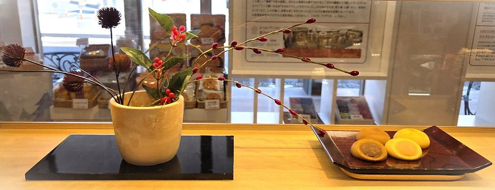 This cute shop located in the Kyassen Shopping district is famous for their ohitotsu and ama-hotate (sweet scallop). Ohitsotsu is a manjuu with a soft covering of brown sugar filled with anko inside. Perfect to eat with tea and coffee. Ohitotsu means one, as in one bite or in one breath. You savor that one bite... but then it’s gone and you still have a lot of tea or coffee left. So, you take another bite, and another, and another, and another. You keep on taking A BITE until you’re out of tea.